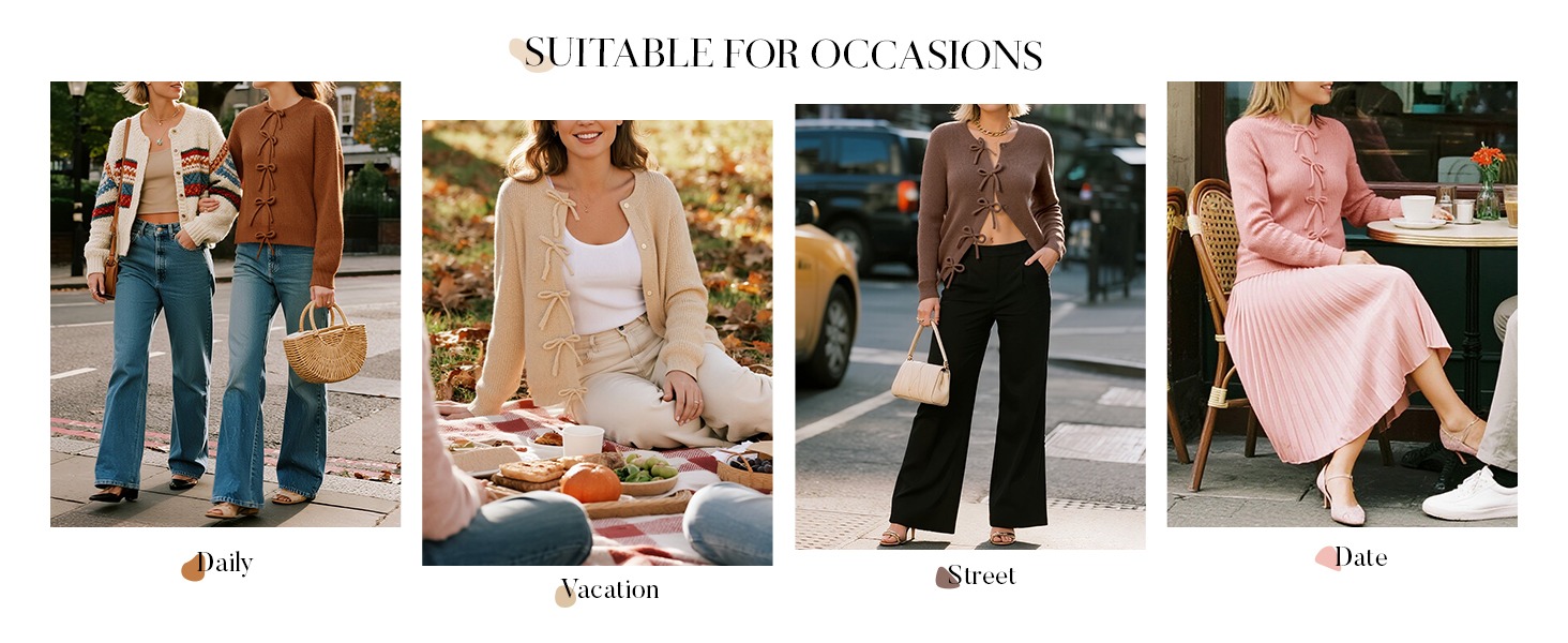 Embrace effortless style with the cozy stylish bow cardigan! Soft, lightweight and comfortable. The chic front bow design adds a playful touch to your look. While the relaxed fit and snap closure make it easy to wear. It's cute and feminine, making it perfect for transitional weather and layering.